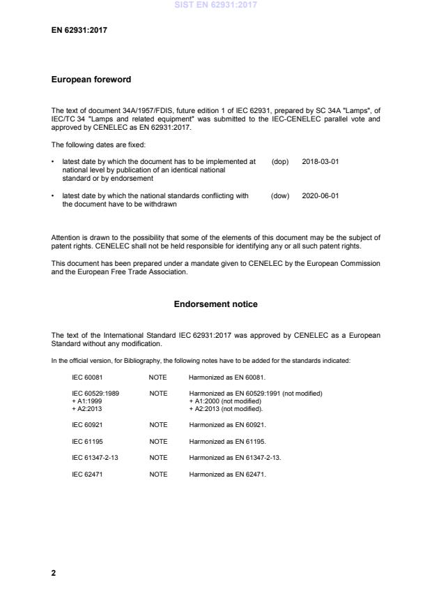 EN 62931:2017 is the CENELEC adoption of IEC 62931:2017 and should be used alongside the referenced standards for a complete safety and interoperability assessment of GX16t‑5 tubular LED lamps.