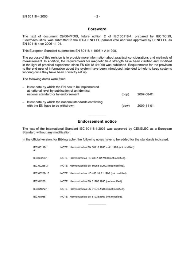 Ref. No. EN 60118-4:2006 E