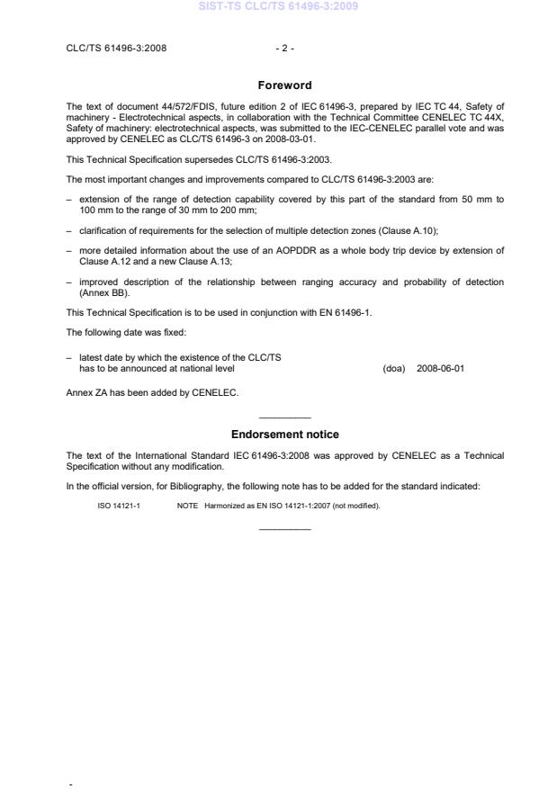 This Technical Specification supersedes CLC/TS 61496-3:2003.