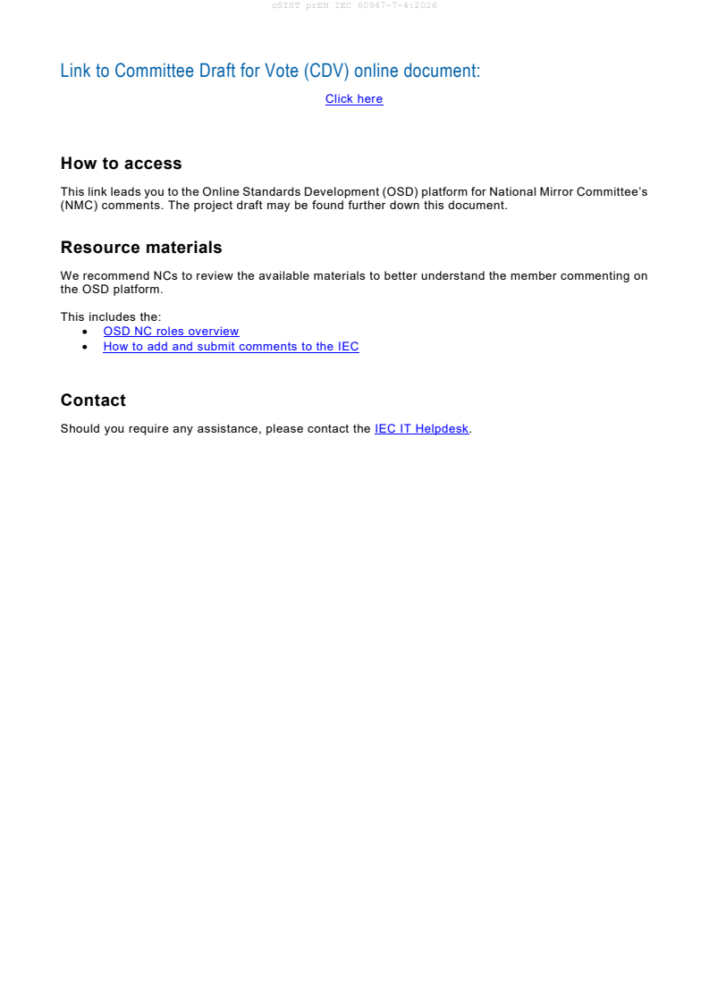 prEN IEC 60947-7-4:2025 defines the requirements and testing procedures for ancillary equipment specifically focusing on PCB terminal blocks used for copper conductors in low-voltage switchgear and controlgear assemblies. Developed by the International Electrotechnical Commission (IEC) and adopted by CENELEC (CLC), this standard supports product safety, reliability, and interoperability in electrical control and distribution systems. As part of the IEC 60947 series, it provides a harmonized framework for manufacturers and users to assess and select PCB terminal blocks fit for integration into printed circuit boards (PCBs).