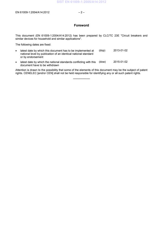 This amendment A14 modifies the European Standard EN 61009-1:2004; it was approved by CENELEC on