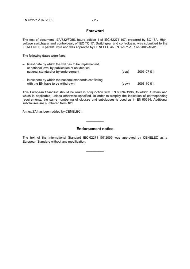IEC-CENELEC parallel vote and was approved by CENELEC as EN 62271-107 on 2005-10-01.