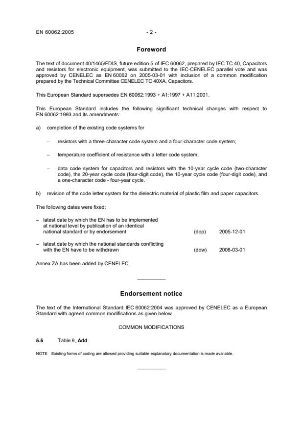 approved by CENELEC as EN 60062 on 2005-03-01 with inclusion of a common modification