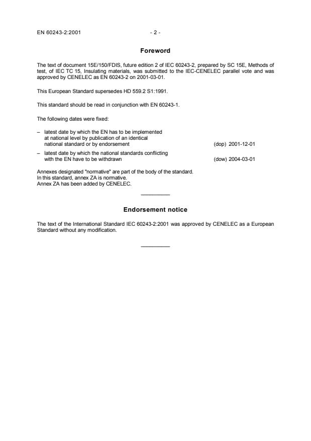 The text of the International Standard IEC 60243-2:2001 was approved by CENELEC as a European