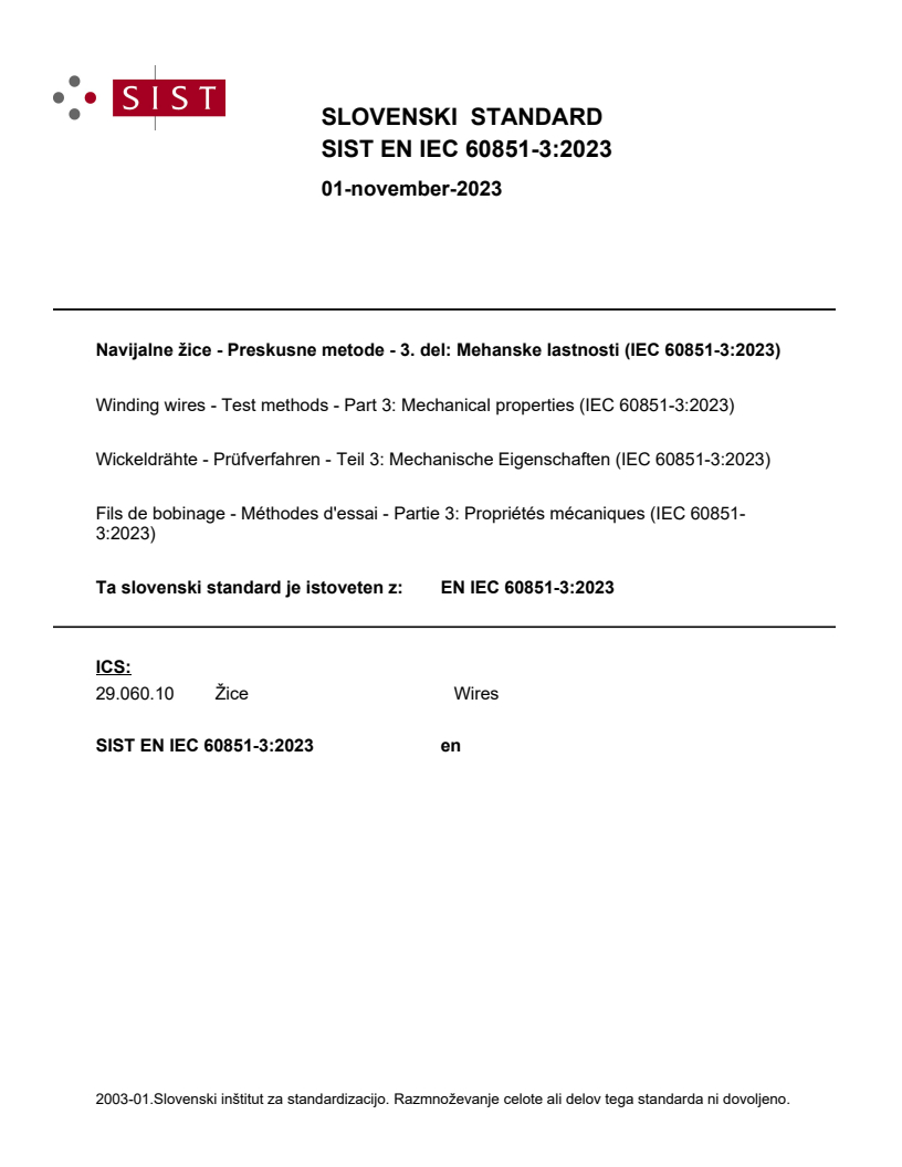 Navijalne žice - Preskusne metode - 3. del: Mehanske lastnosti (IEC 60851-3:2023)