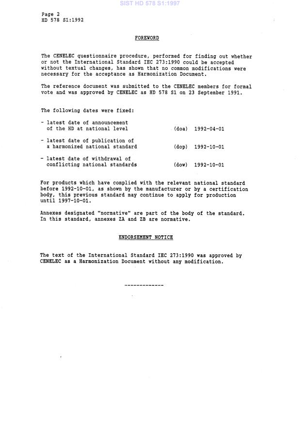 - IEC 273:1990 (corresponding international reference cited by HD 578 S1:1992)