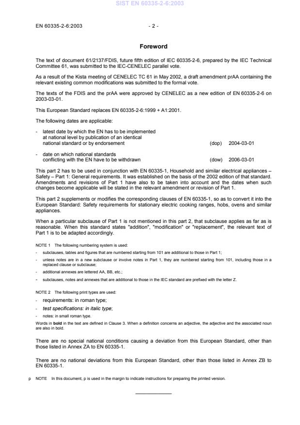 In this document, p is used in the margin to indicate instructions for preparing the printed version. _____________ SIST EN 60335-2-6:2003