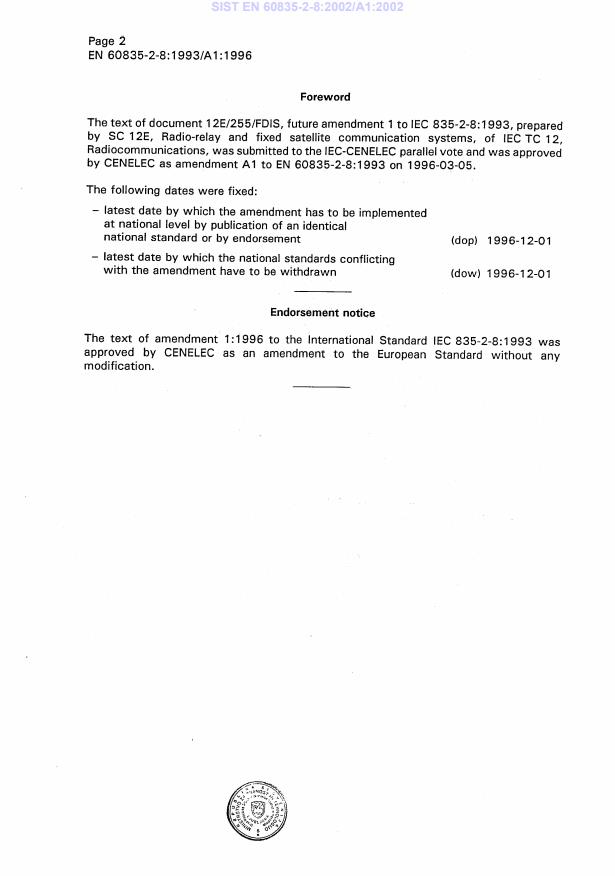 EN 60835-2-8:1993/A1:1996 is classified under the following ICS (International Classification for Standards) categories: 33.060.30 - Radio relay and fixed satellite communications systems. The ICS classification helps identify the subject area and facilitates finding related standards.