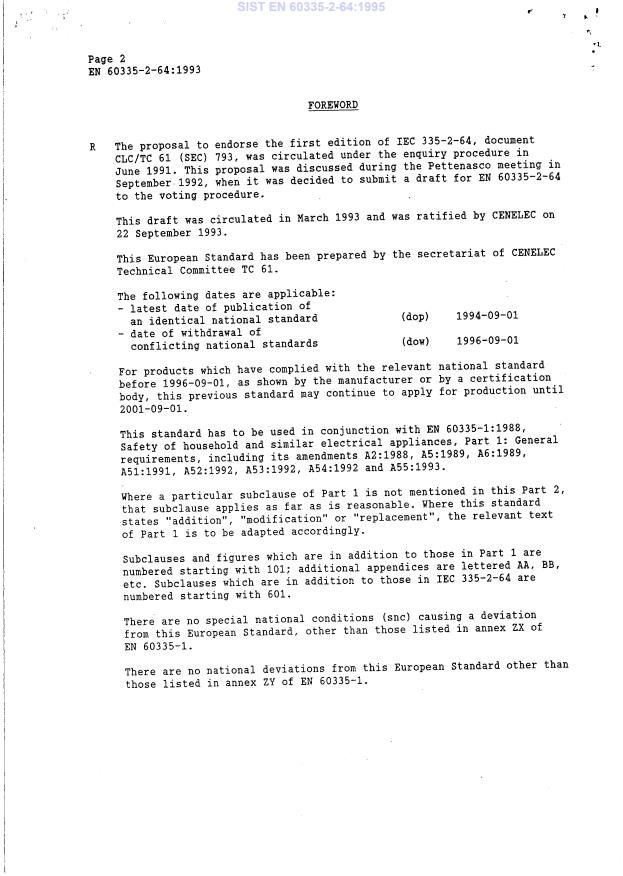 Ta slovenski standard je istoveten z: EN 60335-2-64:1993