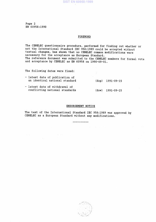Ta slovenski standard je istoveten z: EN 60958:1990