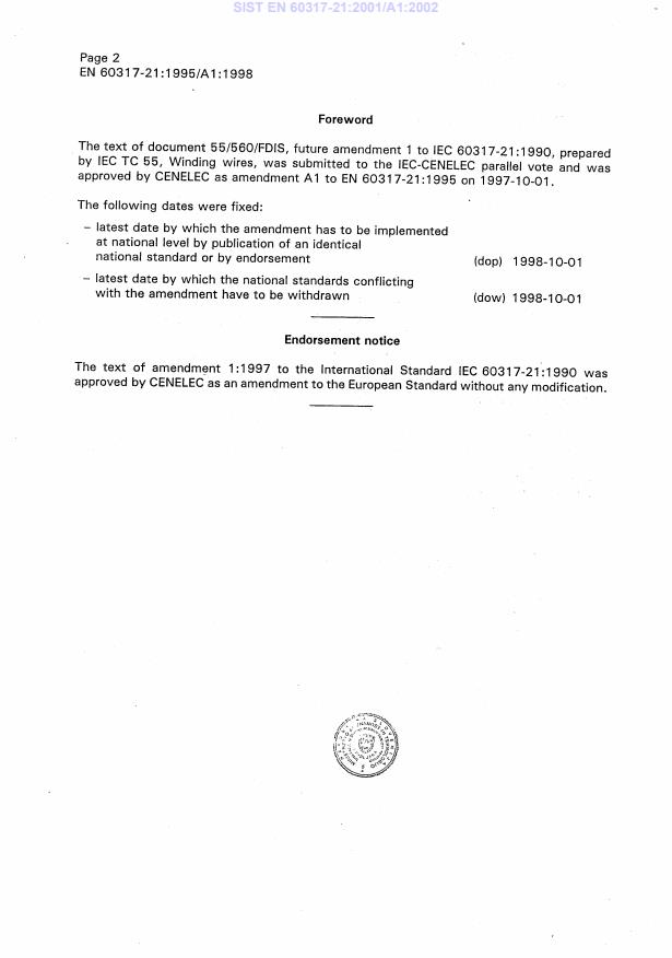 EN 60317-21:1995/A1:1998 is classified under the following ICS (International Classification for Standards) categories: 29.060.10 - Wires. The ICS classification helps identify the subject area and facilitates finding related standards.