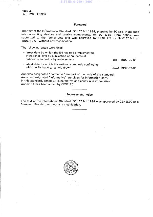 Ta slovenski standard je istoveten z: EN 61269-1:1997