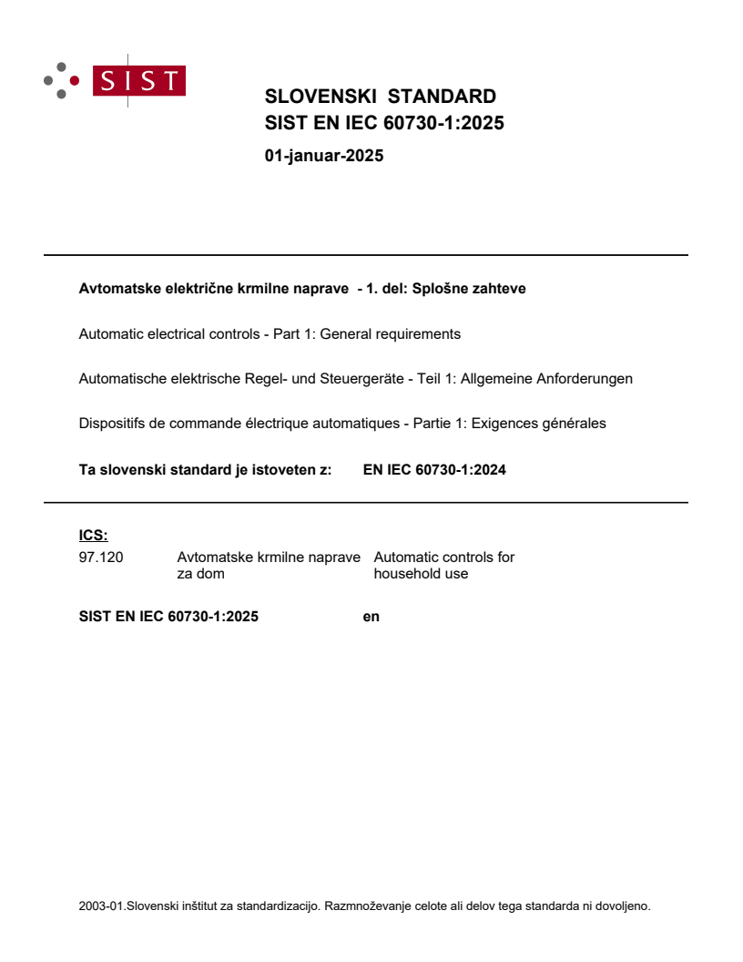 Ta slovenski standard je istoveten z: EN IEC 60730-1:2024