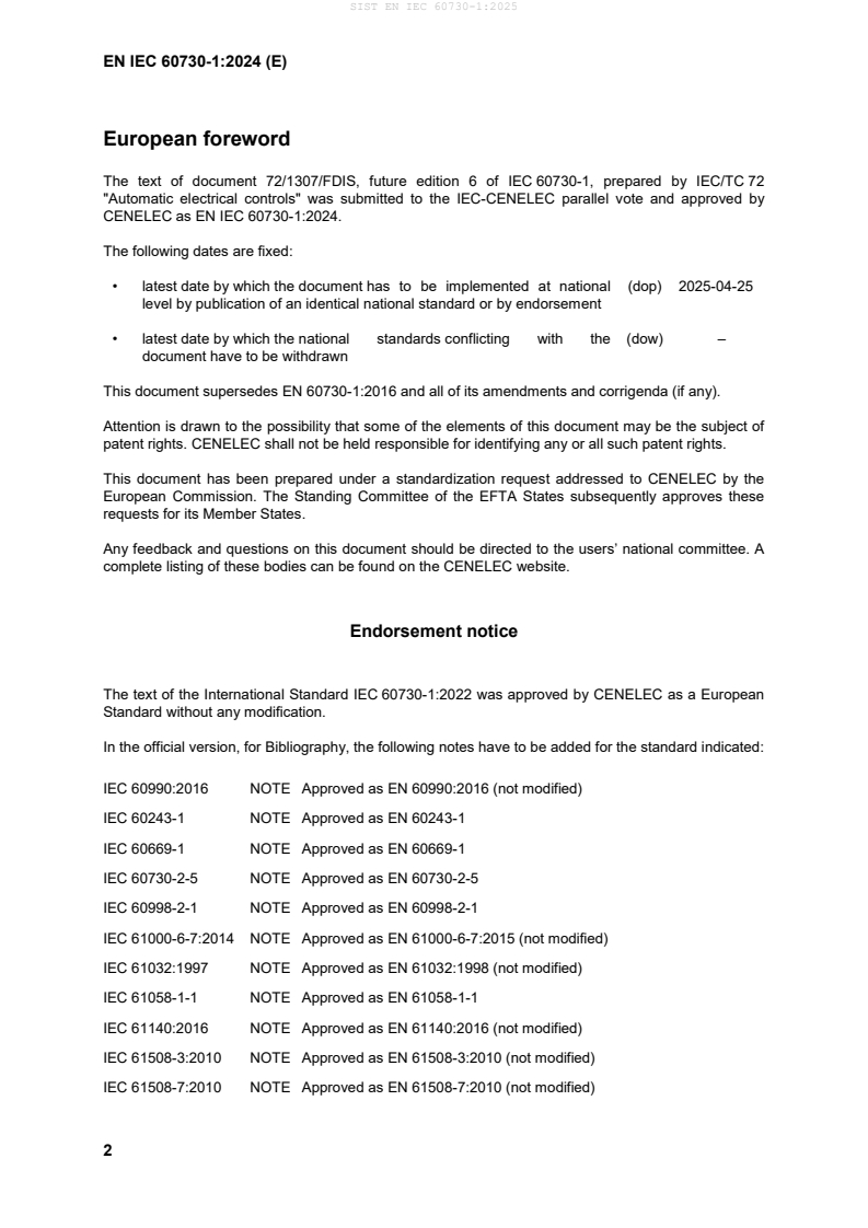 - European adoption of IEC 60730-1:2022, approved by CENELEC (Jan 2024).
