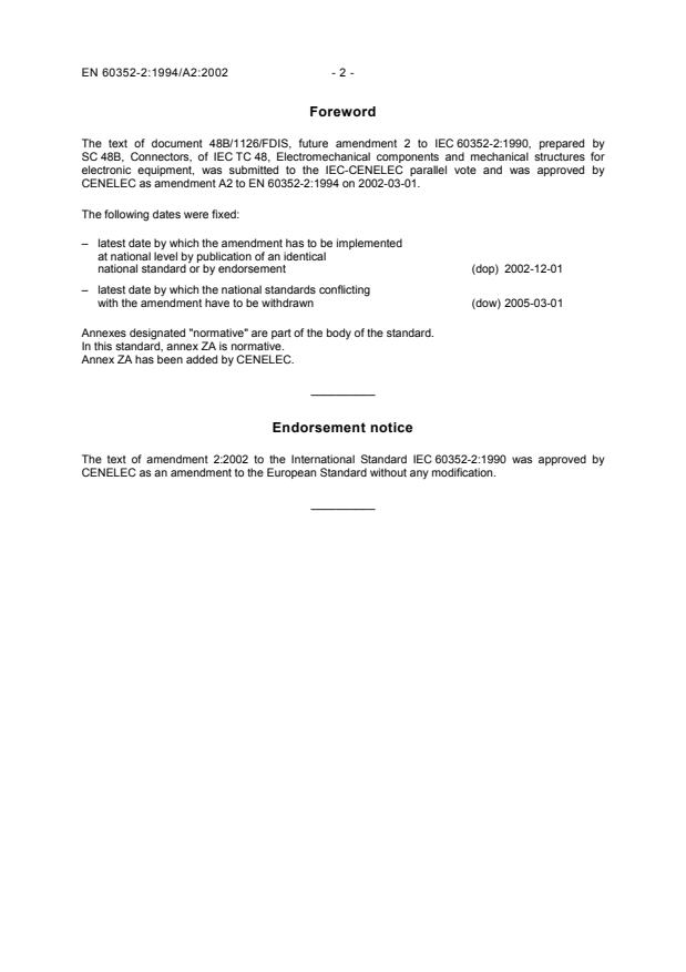 CENELEC as amendment A2 to EN 60352-2:1994 on 2002-03-01.
