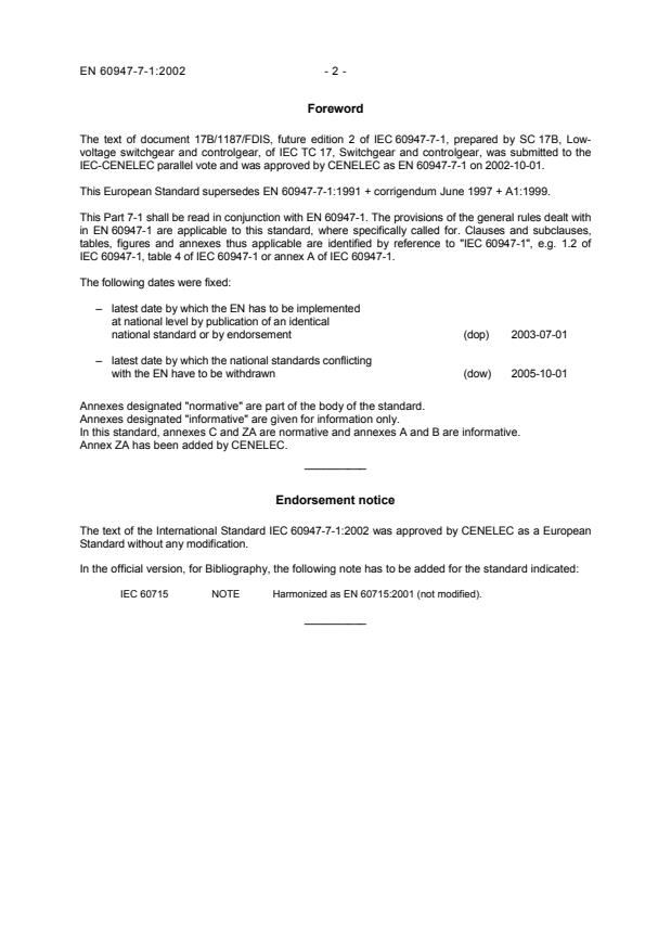 IEC-CENELEC parallel vote and was approved by CENELEC as EN 60947-7-1 on 2002-10-01.