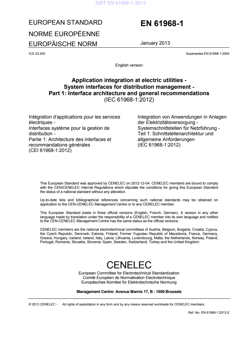 ICS 33.200 Supersedes EN 61968-1:2004