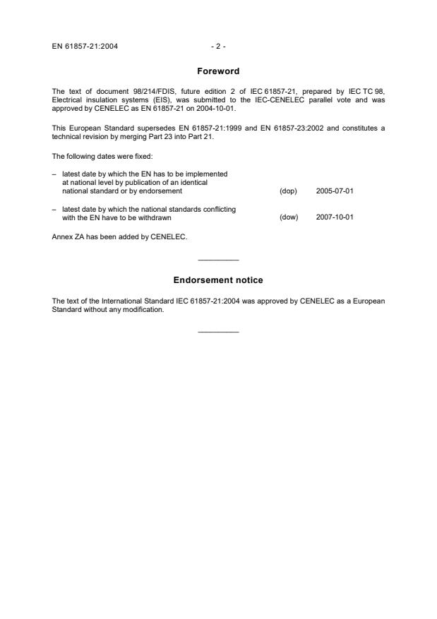 EN 61857-21:2004 is classified under the following ICS (International Classification for Standards) categories: 29.080.30 - Insulation systems. The ICS classification helps identify the subject area and facilitates finding related standards.