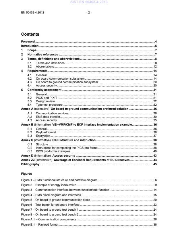 EN 50463-4:2012 is a standard published by CLC. Its full title is "Railway applications - Energy measurement on board trains - Part 4: Communication". This standard covers: This European Standard applies to the on board and on board to ground communication services, i.e. it covers the data communication using digital interfaces: a) between functions implemented within the EMS; b) between EMS function and other on board subsystems; c) between EMS and ground communication services. The on board data communication services of the EMS are covering the data exchange between functions of the EMS and the data exchange between EMS and other on board units, where data is exchanged using a communications protocol stack over a dedicated physical interface or a shared communication network. The on board to ground communication services are covering the wireless data communication between the DHS and the on ground server. Furthermore, this document includes conformity assessment requirements.