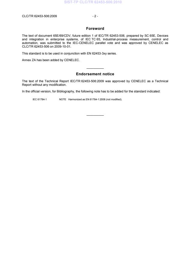 Ta slovenski standard je istoveten z: CLC/TR 62453-506:2009