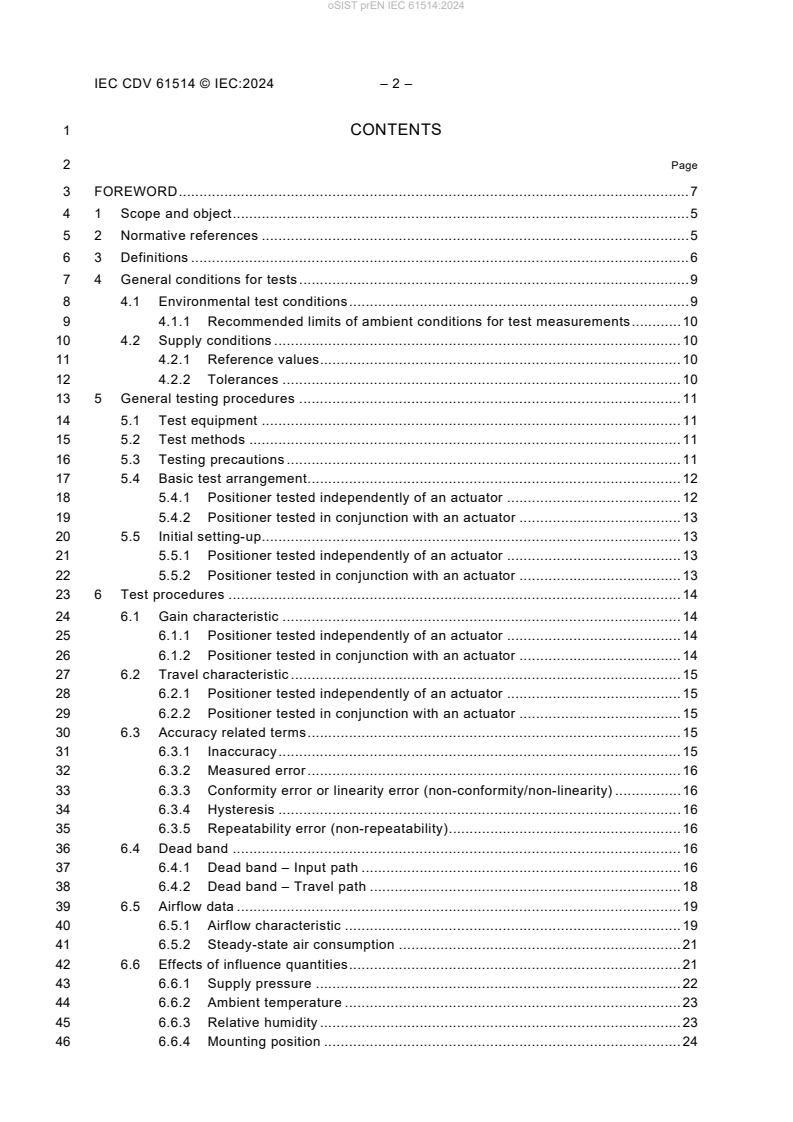 prEN IEC 61514:2024 specifies detailed testing procedures for analogue valve positioners with pneumatic outputs, excluding digital or pulsed input/output devices. The standard supports full and partial evaluation programs tailored to product design and intended operational conditions.Performance Test Procedures