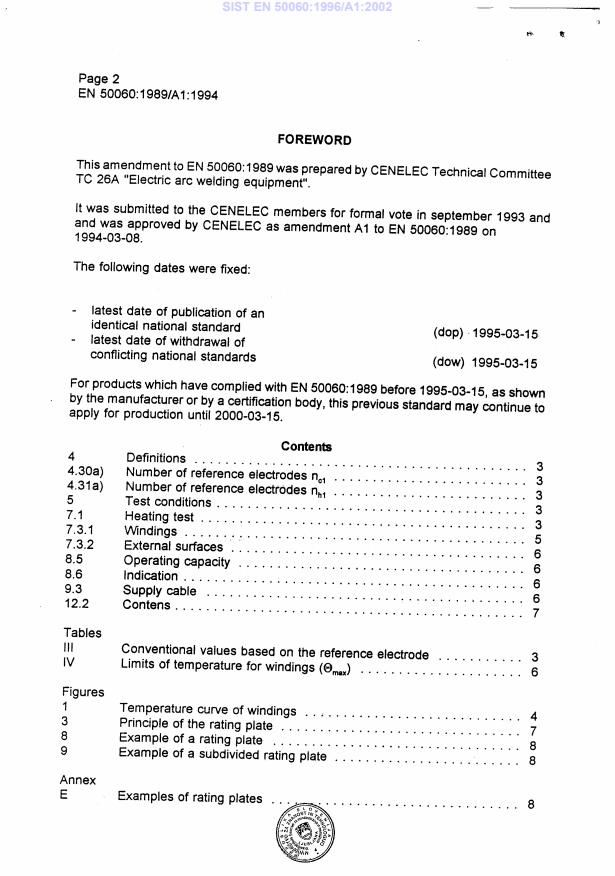 EN 50060:1989/A1:1994 is a amendment published by CLC. Its full title is "Power sources for manual metal arc welding with limited duty". This standard covers: Superseded by EN 60974-6:2003