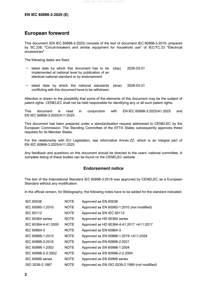 - Other referenced IEC/EN standards on insulation, dielectric testing and installation practices (see EN IEC 60898-3 bibliographic notes).