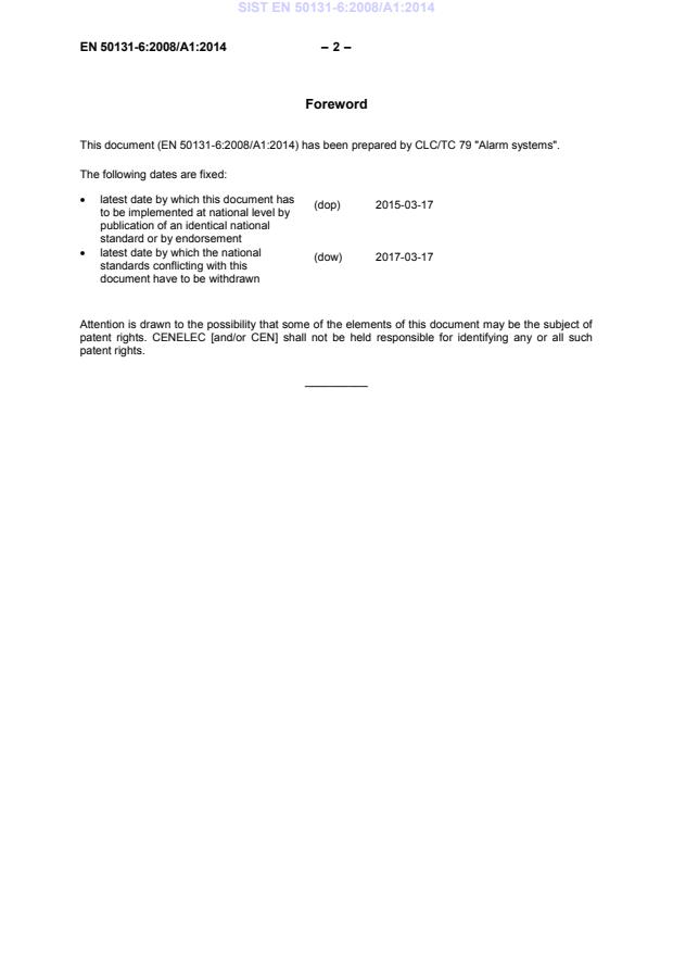 This document (EN 50131-6:2008/A1:2014) has been prepared by CLC/TC 79 "Alarm systems".