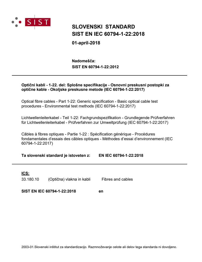 EN IEC 60794-1-22:2018