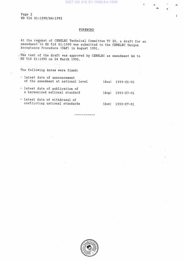 Ta slovenski standard je istoveten z: HD 516 S1:1990/A4:1992