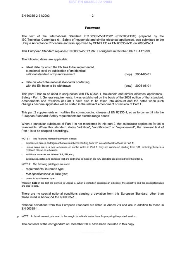This European Standard replaces EN 60335-2-31:1997 + corrigendum October 1997 + A1:1999.