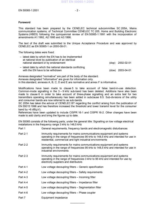 ICS 33.040.30 Supersedes EN 50065-1:1991 + A1:1992 + A2:1995 + A3:1996