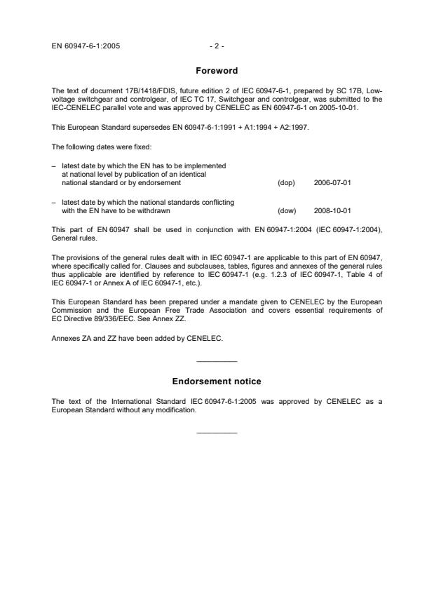 ICS 29.130.20 Supersedes EN 60947-6-1:1991 + A1:1994 + A2:1997