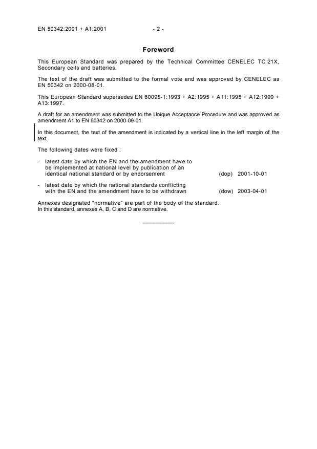 EN 50342:2001 + A1:2001 - 2 -