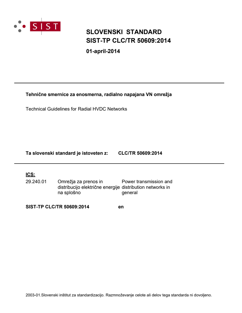 CLC/TR 50609:2014 - Technical Guidelines for Radial HVDC Networks is a CENELEC technical report that addresses design and operational aspects of HVDC Grid Systems with more than two converter stations (multiterminal HVDC), focusing on radial HVDC network structures and pure VSC (Voltage Source Converter)-based solutions. The report covers both grounded and ungrounded DC circuits, interface requirements between AC and DC systems, and functional specifications intended to support multi‑vendor procurement and interoperability of multiterminal HVDC projects.