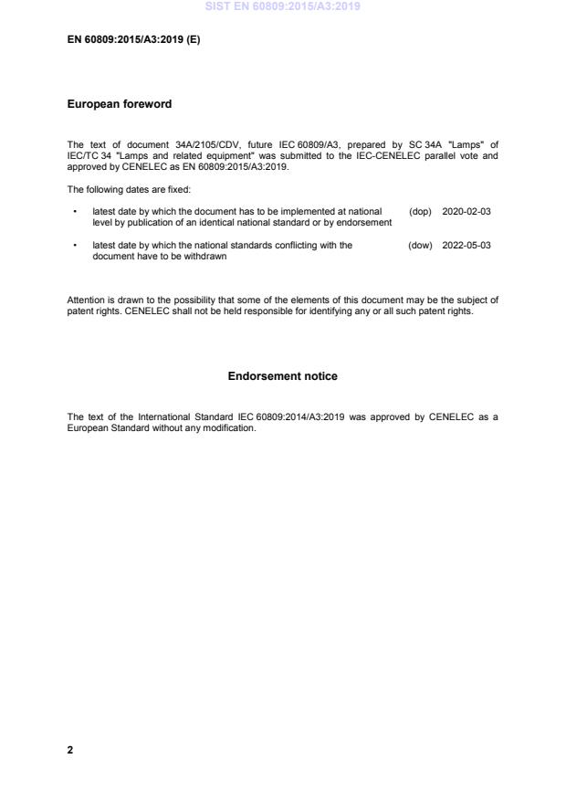 This amendment A3 modifies the European Standard EN 60809:2015; it was approved by CENELEC on 2019-05-03. CENELEC members