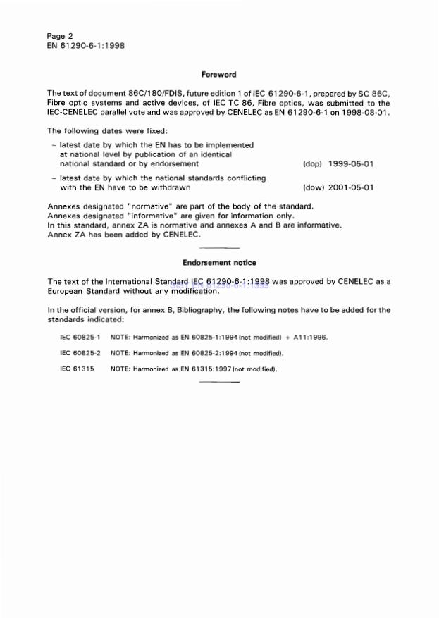 Keywords: EN 61290‑6‑1:1998, optical fibre amplifiers, pump leakage, optical demultiplexer, test methods, insertion loss measurement, optical power meter, rare‑earth doped amplifiers.