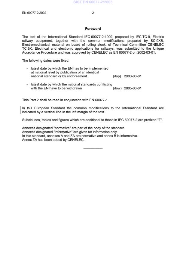 Ta slovenski standard je istoveten z: EN 60077-2:2002