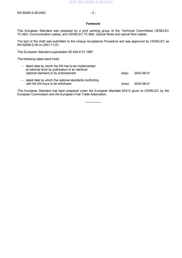 Ta slovenski standard je istoveten z: EN 50290-2-29:2002