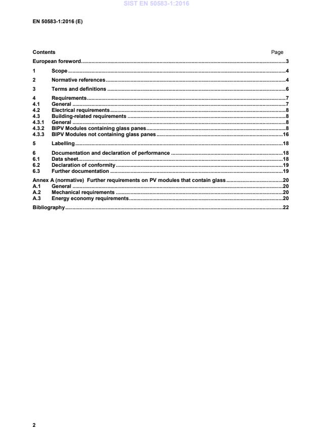 Ta dokument ne velja za koncentrirane fotovoltaične module ali fotovoltaične module, pritrjene na stavbe. 1 Ta dokument obravnava zahteve za fotovoltaične module glede na načine, na katere se pritrjujejo, vendar ne glede na dejansko strukturo za njihovo pritrditev, ki spada v obseg standarda EN 50583-2.