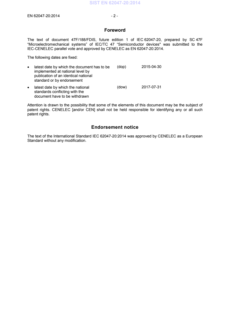 Ta slovenski standard je istoveten z: EN 62047-20:2014