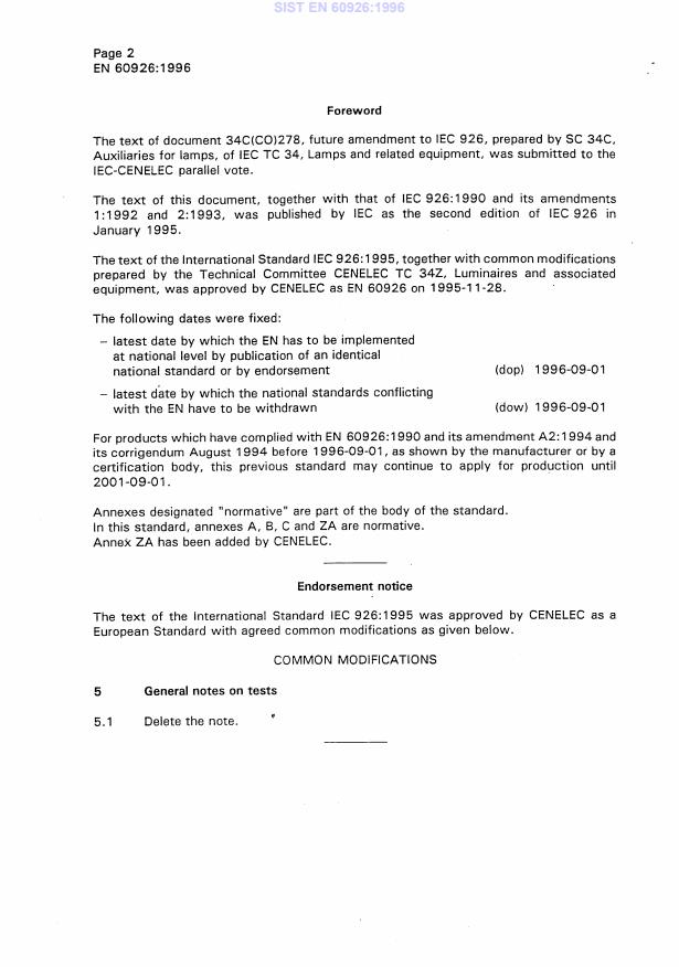Ta slovenski standard je istoveten z: EN 60926:1996