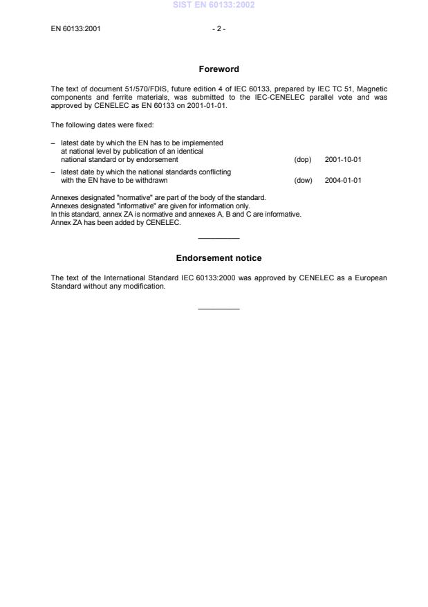 EN 60133:2001 is classified under the following ICS (International Classification for Standards) categories: 29.100.10 - Magnetic components. The ICS classification helps identify the subject area and facilitates finding related standards.