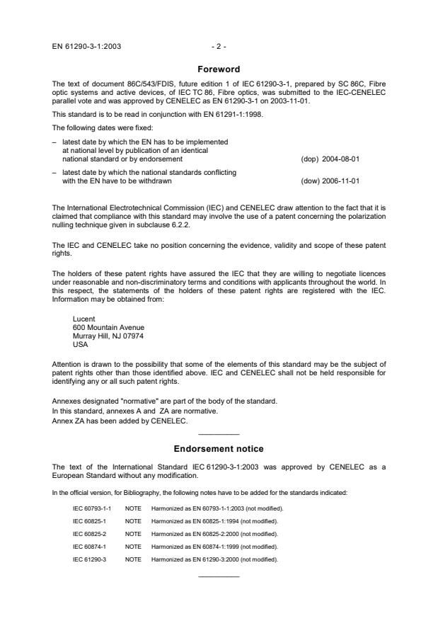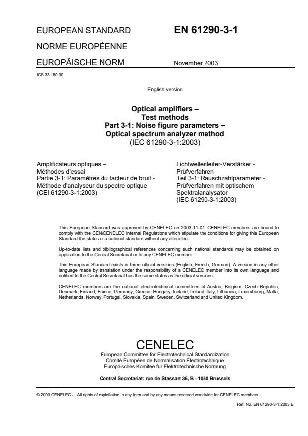 EN 61290-3-1:2003 has the following relationships with other standards: It is inter standard links to IEC TR 61292-3:2003, EN 61291-1:1998, EN 61290-1-1:1998, EN IEC 61291-1:2018, EN 61291-1:2006, EN 61291-2:2016, EN 61290-3:2008, EN 61280-2-9:2009, EN 62129:2006, EN 61291-1:2012. Understanding these relationships helps ensure you are using the most current and applicable version of the standard.