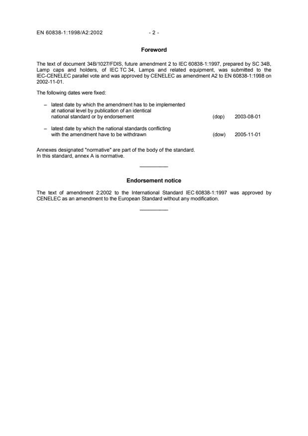 EN 60838-1:1998/A2:2002