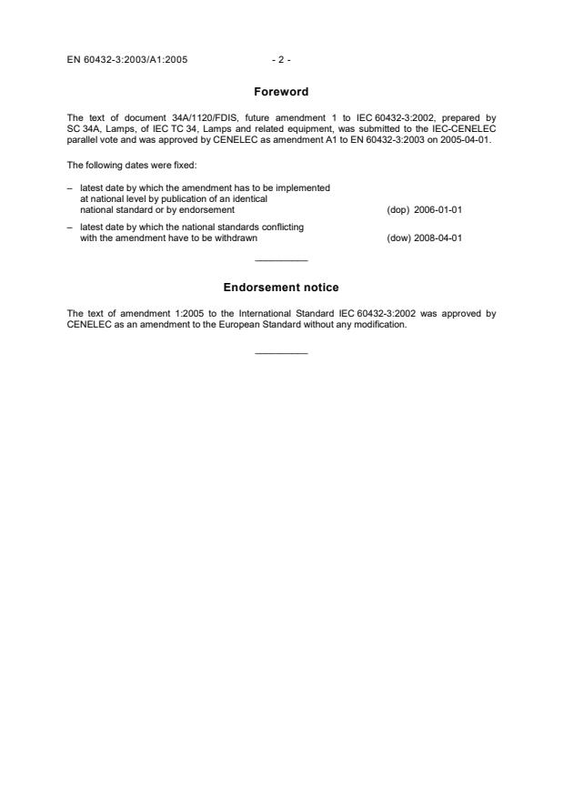 parallel vote and was approved by CENELEC as amendment A1 to EN 60432-3:2003 on 2005-04-01.