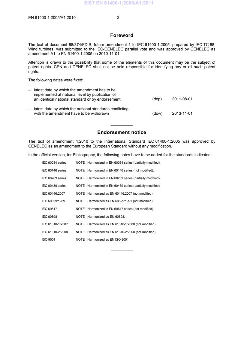 amendment A1 to EN 61400-1:2005 on 2010-11-01.