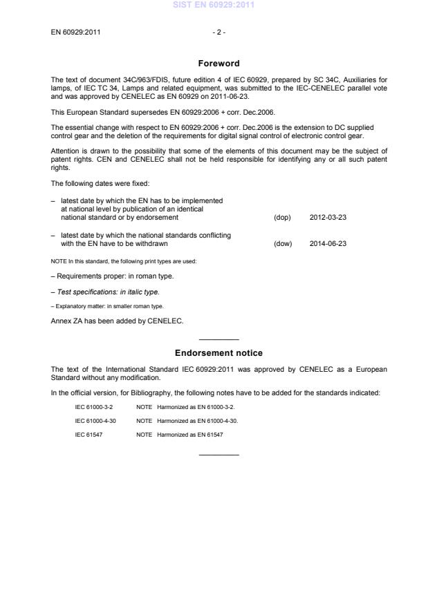 Ta slovenski standard je istoveten z: EN 60929:2011