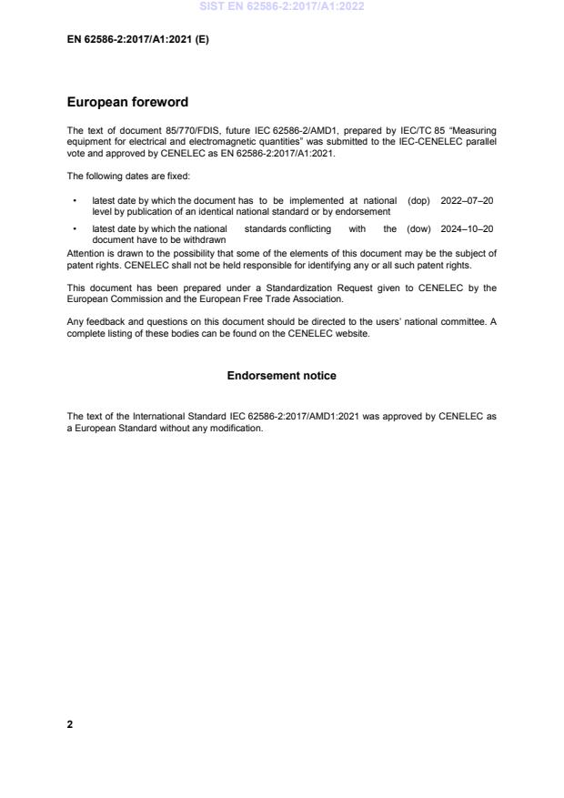 - Part of the IEC/EN 62586 series (power quality measurement standards). This document is an amendment to EN 62586-2:2017 and should be used alongside the main Part 2 text and other parts in the series for full compliance.