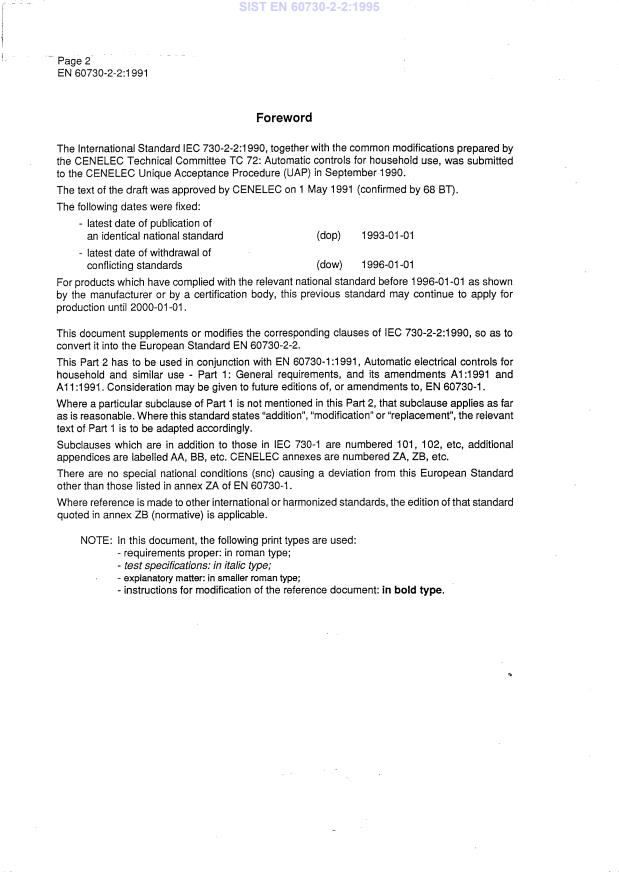 EN 60730-2-2:1991 has the following relationships with other standards: It is inter standard links to EN 60730-2-2:2002, EN 60730-2-2:1991/A1:1997, EN 60730-2-2:1991/A11:1995, EN 60730-2-2:1991/A2:1997. Understanding these relationships helps ensure you are using the most current and applicable version of the standard.